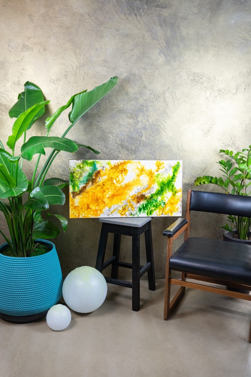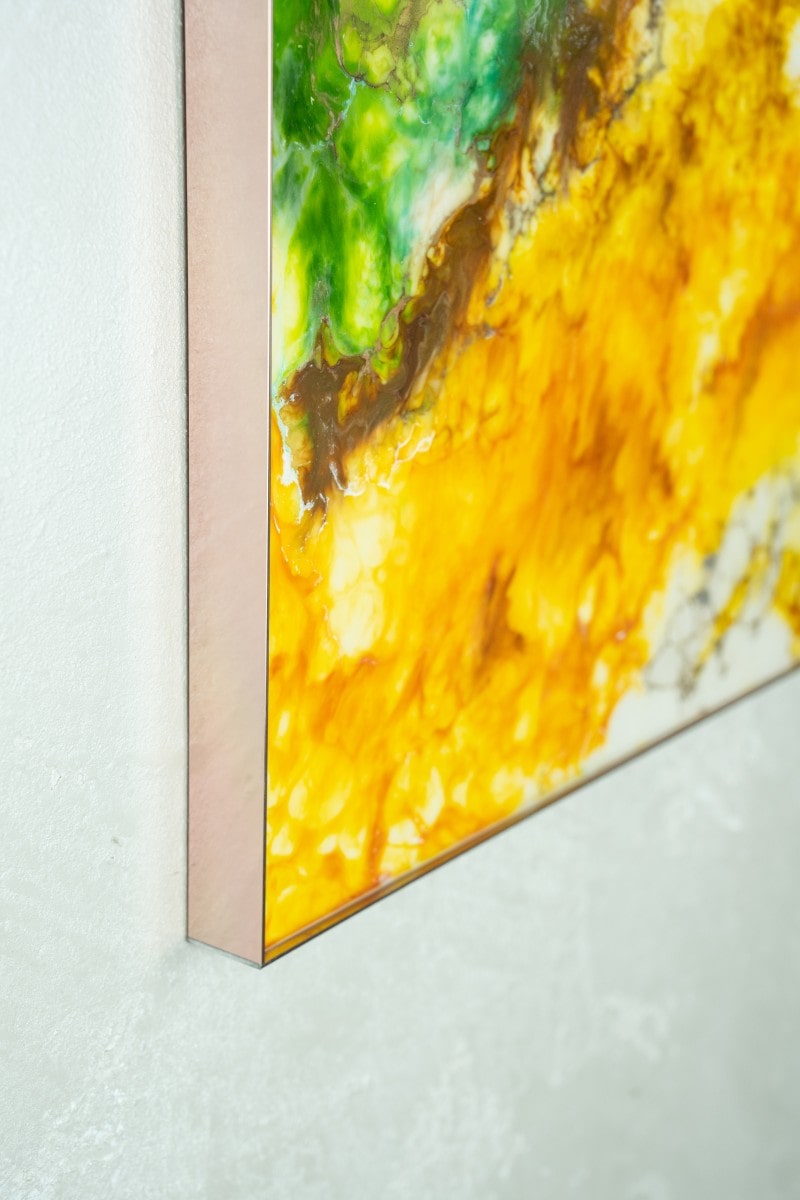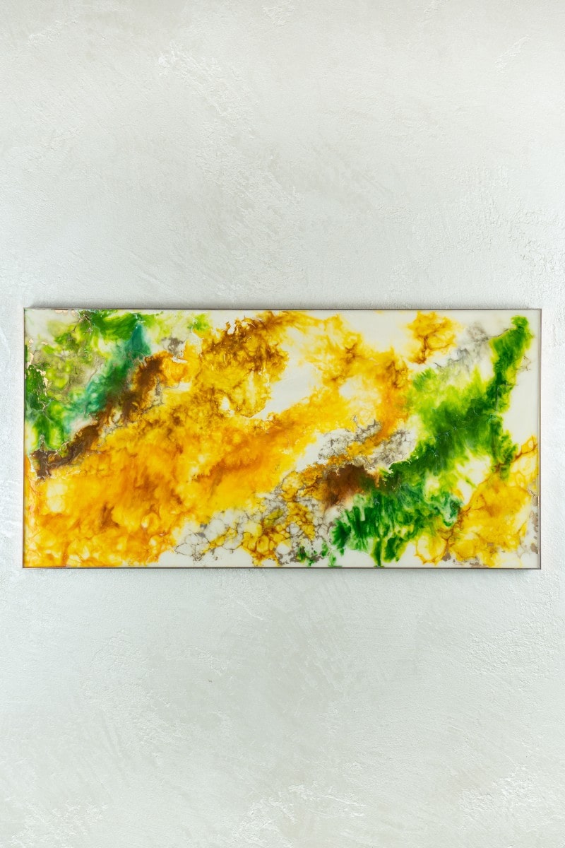 Versatility and Ideal Spaces : ” Germoglio ” is ideal for environments that evoke freshness and naturalness, such as winter gardens, dining rooms or modern kitchens, where its green and golden tones bring a breath of vitality and warmth. In a meeting room or in a corporate office, this work conveys a message of growth and innovation, stimulating creativity and vision. Also perfect for reception environments, such as entrances or common areas, ” Germoglio ” can become a symbol of welcome, representing a new beginning and an opening towards possibilities. In residential contexts, positioned in open spaces or next to natural wood elements, ” Germoglio ” integrates harmoniously, creating an atmosphere of serenity and connection with nature.
