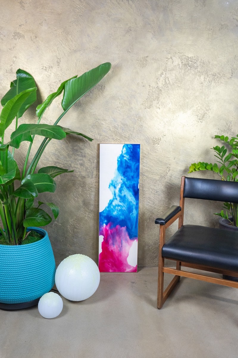 Versatilità e Spazi Ideali: “Fluido” si presta ad ambienti che valorizzano l’apertura e la fluidità, come salotti moderni, spazi di meditazione o angoli di lettura dove si cerca una pausa dalla rigidità e dall’ordine. I colori azzurro e rosa creano un equilibrio morbido e rilassante, ideale per interni con pareti bianche o grigio chiaro, dove l’opera può risaltare con eleganza. In ambienti ispirati al design scandinavo o in spazi che richiedono un tocco di leggerezza, “Fluido” dona un senso di calma e continuità, arricchendo con armonia e raffinatezza. È perfetto anche per studi di yoga o wellness, dove il movimento dei colori aiuta a creare un’atmosfera di introspezione e rilassamento.