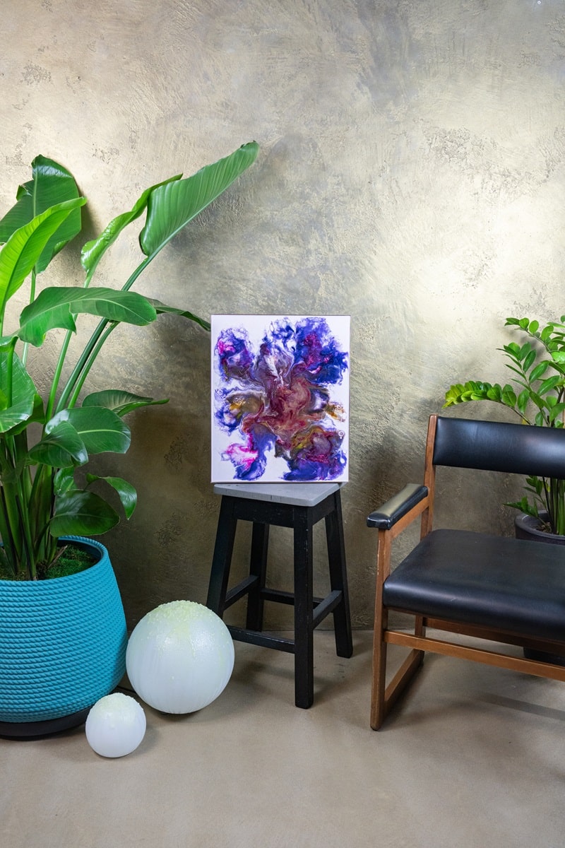 L’opera si armonizza con ambienti dal gusto ricercato, accostandosi bene a pareti chiare oppure a toni desaturati come il Pantone 406 C (Misty Gray). Inserita in spazi luminosi o accoglienti, dona respiro, vibrazione e un tocco profondamente evocativo.