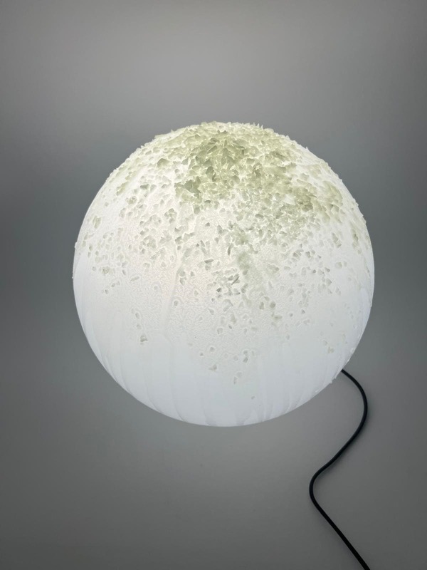 “Moon” è la celebrazione della luce lunare, una presenza poetica e avvolgente che trasforma ogni ambiente. Realizzata in resina luminescente, questa lampada cattura l’essenza della luna, con una superficie che richiama i suoi crateri e un bagliore che evolve con la luce circostante. È più di un complemento d’arredo: è un invito alla contemplazione, un simbolo di calma e meraviglia che aggiunge una dimensione emotiva agli spazi. Ogni dettaglio racconta il legame tra la luce e l’oscurità, tra il visibile e l’immaginato, rendendo questa lampada un’opera d’arte funzionale.
