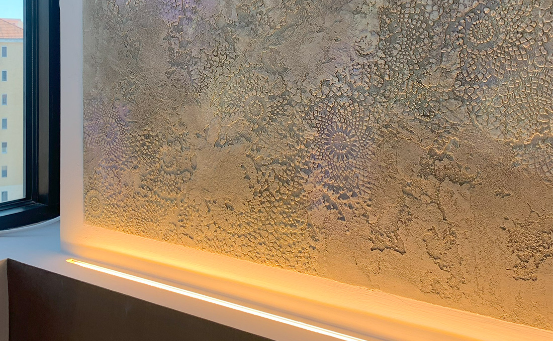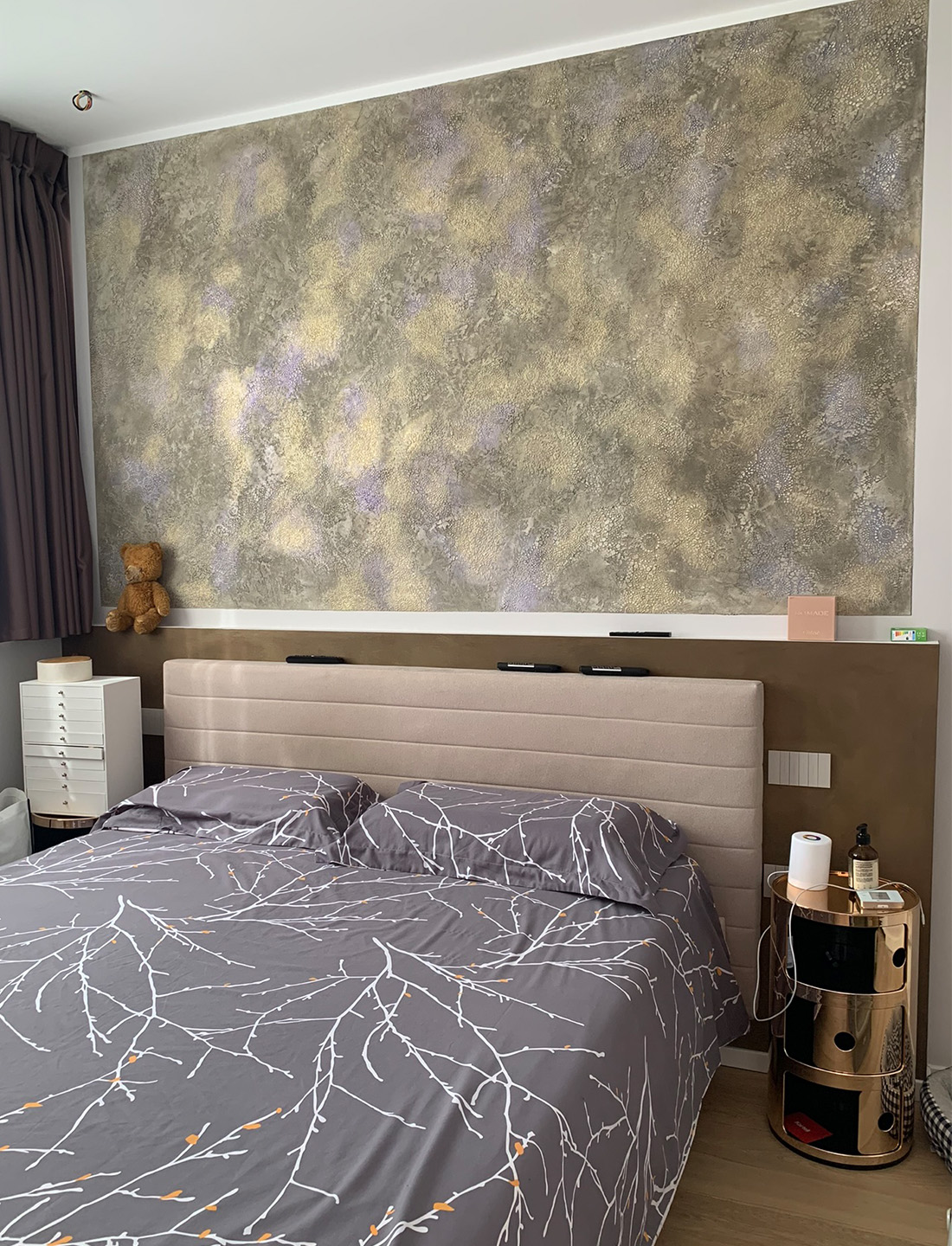 Parete artistica come testata del letto con retroilluminazione dimmerabile